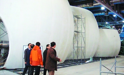 在山東館前,我們看見地面幾位工程師正在商量,上面的架子上幾位工人正在施工。王錦珍副會長向正在那里的施工負(fù)責(zé)人詢問進(jìn)展情況,施工負(fù)責(zé)人回答說,我們施工進(jìn)展很順利,這個月底就可以完工,并將很快轉(zhuǎn)入試運(yùn)行。月底,省里的領(lǐng)導(dǎo)還將到這里來檢查。