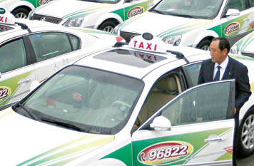 “世博出租車這么好啊,后座還有收藏式的小茶幾。”“它有什么特殊功能嗎?”“我能和它留個(gè)影嗎?”昨天,當(dāng)100輛印有“中國館”、“東方明珠”等圖案以及“綠色行動(dòng)”字樣的油電混合動(dòng)力巴士世博專用出租車正式與市民見面時(shí),市民對這些新車充滿了好奇,興奮之情無以言表。記者了解到,乘客若電話預(yù)訂這些巴士世博出租車,不會(huì)被多收費(fèi)。世博期間,4000輛世博出租車將接受上海世博出租車調(diào)度平臺的電調(diào)派車業(yè)務(wù),沒有調(diào)派業(yè)務(wù)時(shí),可接受市民的揚(yáng)招。