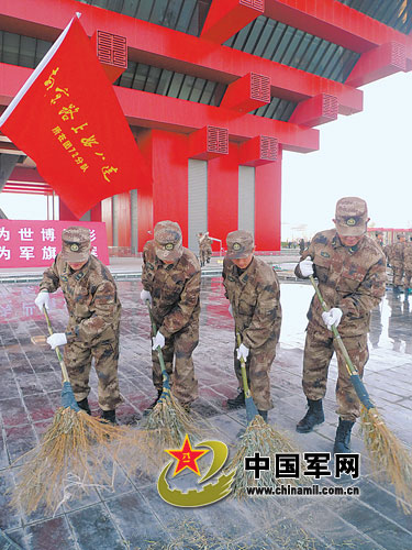 時(shí)值早春3月,隨著世博會(huì)腳步日益臨近,萬名官兵今天來到即將建設(shè)完工的世博園,開展清潔世博園區(qū)義務(wù)勞動(dòng),用實(shí)際行動(dòng)為世博做貢獻(xiàn)。