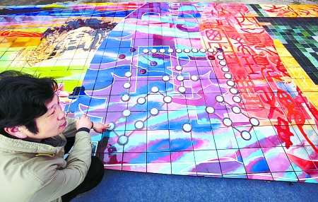 3月29日上午,在三彩藝窯廠,記者看到,工作人員正在對一塊塊壁畫進(jìn)行最后的清掃、粘貼。郭愛和介紹,這幅壁畫長26米、高3.2米,整幅壁畫緊扣世博會中國河南館“中國之中,城市之源,文明之根,中原崛起”的主題,用洛陽三彩作為畫面主體背景色調(diào),將河南的歷史和未來通過白描、寫意、油畫等各種畫種體現(xiàn)出來,是“城市,讓生活更美好”這一世博會主題的最好體現(xiàn)。