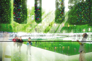 “建筑內部的綠色立體園林,也使用了可降解、可循環(huán)的材料,以盡可能達到最大限度的環(huán)保。這些綠色的植物,除了可以讓人們親近自然,還能夠幫助調節(jié)室內溫度,讓參觀者更加舒適。屋頂的太陽能電池板,則提供了清潔而免費的能源!狈娇烧f。