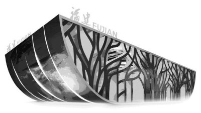 福建地處祖國東南沿海,面向臺(tái)灣海峽,依山傍海,擁有豐富的生態(tài)資源和漫長的海岸線。因此,福建館整體外觀設(shè)計(jì)為船形,以“綠、藍(lán)、白”為主色調(diào),正面為綠色榕樹造型,兩側(cè)船頭為藍(lán)色大海影像墻,頂部為白色橫梁,充分體現(xiàn)福建山中有城、城中有山,城海相連、海城一色的景象。整個(gè)展館像一艘在臺(tái)灣海峽中乘風(fēng)破浪的“生態(tài)船”,展現(xiàn)了福建作為綠色大省的風(fēng)采。