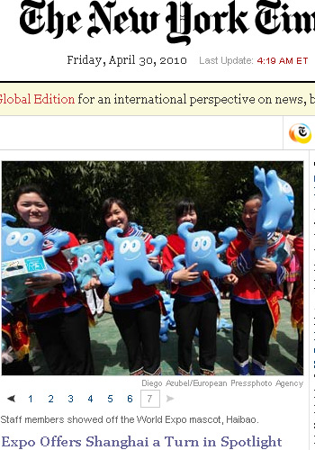 百年期盼,八年籌辦,2010年上海世博會(huì)于4月30日晚在黃浦江畔的世博園區(qū)盛大開幕。來自全球 189個(gè)國家和57個(gè)國際組織實(shí)際參展,創(chuàng)造了世博會(huì)159年歷史之最,世界在中國上海實(shí)現(xiàn)空前大團(tuán)聚。各國媒體對此次盛會(huì)的報(bào)道也進(jìn)入高潮。