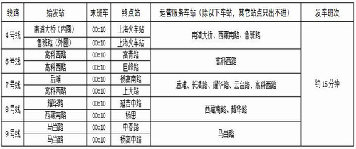 軌道交通4、6、7、8、9五條涉博線路在常規(guī)末班車后,將在世博園周邊站點加開加班列車,除重點涉博車站以外,其他途經(jīng)車站只可下客出站,不可進站上客和換乘。加開列車末班車時間為0:10,運營間隔約為15分鐘一班。具體車站的首末班車時間還可查看各車站公告、至上海地鐵官網(wǎng)(/) 進行查詢或撥打地鐵服務熱線64370000進行詢問。
