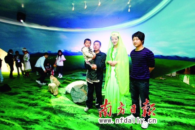 一方面是因?yàn)楫?dāng)其他省市區(qū)館都以炫目的聲光電技術(shù)展示最新的科技理念時,青海館卻突出了自然的特色。綠色代表著江河源頭的生命氣息和凈土特色,白色象征著高聳的昆侖雪峰。這是母親河出生的地方。