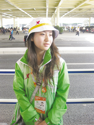 張?bào)蘩霞以诮鳎菑?fù)旦大學(xué)視覺藝術(shù)學(xué)院的大一學(xué)生,標(biāo)準(zhǔn)的90后女孩。通過網(wǎng)上報(bào)名并獲得任用后,她成為了上海世博會(huì)首批志愿者,而如果再細(xì)分則可稱作“高峰期志愿者”。“每天早上7點(diǎn)半不到就得到園區(qū),晚上下班時(shí)間不定,至少10點(diǎn)以后吧!睆?bào)薷嬖V記者,她每天要做的,就是站在這處位于商業(yè)中心最繁華的街角,為任何有需要的游客提供力所能及的幫助。接受采訪時(shí),女孩才正式上崗短短半日,“已經(jīng)為至少20個(gè)游客指路,或是回答他們的一些咨詢!