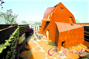 外墻滿布自由生長的鐵銹,高高的尖頂造型奇特,號(hào)稱沒有安裝空調(diào),用環(huán)保材料造出“天然空調(diào)”的盧森堡大公國館昨日上午舉行了開館儀式。奇妙的是,游客一進(jìn)入館內(nèi)果然涼爽怡人。館方透露,這是因?yàn)樵诮ㄔ鞎r(shí)外墻和地板均使用了盧森堡特有的冷杉木,而且設(shè)計(jì)為雙層結(jié)構(gòu),隨時(shí)保持空氣流通,就像一個(gè)天然有溫度調(diào)節(jié)功能的“保溫瓶”。