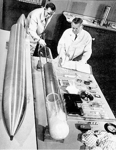 這個(gè)穿越時(shí)空的禮物,有著鉻銅合金制成的外殼,看起來就像一個(gè)兩米長(zhǎng)的巨大的子彈。它里面所裝載的,除了那些讓當(dāng)時(shí)人們自豪的科學(xué)發(fā)明和日常用品,還包括一段紀(jì)錄片、存有超過1000萬字文檔的微縮膠片,以及三位“對(duì)時(shí)代做出巨大貢獻(xiàn)”的人給后代的留言,其中就包括愛因斯坦。