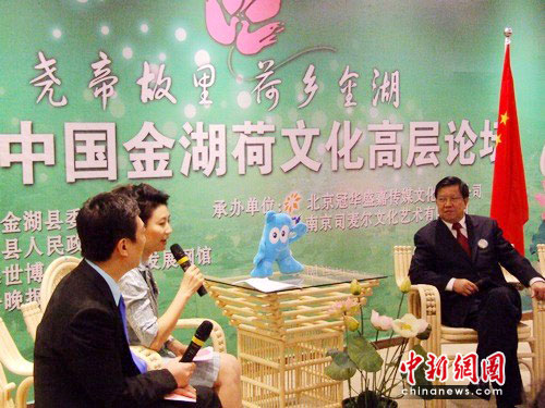 本屆論壇是第十屆中國(guó)金湖荷花•美食節(jié)的高端活動(dòng)之一,借助世博會(huì)的平臺(tái),讓荷文化作為金湖的形象大使,牽手世博,走向國(guó)際,發(fā)展金湖。論壇一改過(guò)去嘉賓輪流上臺(tái)發(fā)言的設(shè)計(jì),采用央視訪談欄目的場(chǎng)景設(shè)計(jì)和節(jié)目流程,由央視名嘴陳偉鴻、王小丫現(xiàn)場(chǎng)主持。出席論壇的嘉賓們?cè)谥鞒秩说囊龑?dǎo)下,聯(lián)系金湖發(fā)展和各自實(shí)際,圍繞“荷”氣生財(cái)論經(jīng)濟(jì)、以“荷”為媒說(shuō)規(guī)劃和政通人“荷”談民生三大論題進(jìn)行現(xiàn)場(chǎng)訪談。