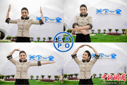 中新網(wǎng)5月11日電 作為“世博手勢(shì)形象大使”,同時(shí)也是上海女孩,黃奕日前來(lái)到世博館“天下一家”未來(lái)館門口,拍攝一組手勢(shì)大片,身體力行教大家如何演繹EXPO的含義。