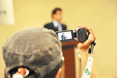 5月12日上午,約20名世博會(huì)注冊(cè)大學(xué)生記者來到美國(guó)館專訪了費(fèi)樂友。