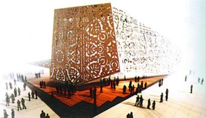 波蘭館外形抽象且不規(guī)則,表面布滿鏤空花紋,仿若民間剪紙,使參觀者獲得有趣的視覺體驗(yàn):色彩變幻的光線穿過剪紙圖案在館內(nèi)營造一種明暗錯落的效果。