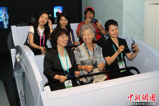 當(dāng)“世博奶奶”乘坐的通往中國航空館二樓主展區(qū)的電梯門一打開,她便發(fā)出驚嘆之聲,隨即表示非常期待體驗中國航空館主展區(qū)的地乘4D展演系統(tǒng),當(dāng)乘坐無軌觀光車體驗過一段完美的飛翔之旅后,“世博奶奶”意猶未盡地說:“非常棒,感覺像身臨其境一樣!