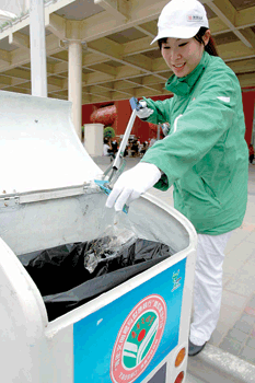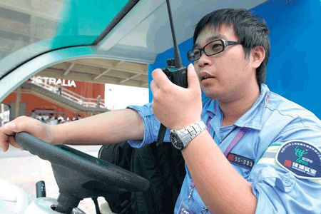 兩年前的今天,他是法國斯特拉斯堡第三大學(xué)高等商學(xué)院的在讀碩士;兩個(gè)月前的今天,他是南匯勞動局下某企業(yè)的人事主管;但今天,他卻是世博園內(nèi)一名負(fù)責(zé)垃圾收運(yùn)工作的主管,每一天,他親手收運(yùn)的垃圾箱就有40多個(gè)。他就是今年27歲的董磊,目前是上海世博園內(nèi)垃圾收運(yùn)班組的負(fù)責(zé)人。