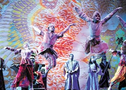 昨晚,黎巴嫩卡拉卡拉舞蹈團在世博中心大會堂上演代表劇目 《月光騎士》和《兩千零一夜》的精彩片段。《月光騎士》曾在各國巡演,并于2009年3月在肯尼迪中心演出大獲成功。(簡工博)