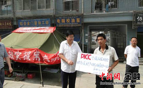 中新網8月11日電 中國人保財甘肅省分公司在舟曲理賠服務點組織召開現場理賠會,支付首筆共計1萬1千元災后理賠款。