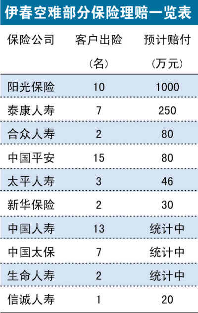 泰康人壽則表示,已確認(rèn)有7名客戶出險,其中有5名客戶不幸罹難,為團(tuán)險和創(chuàng)新網(wǎng)銷客戶,每人保額50萬元,累計(jì)預(yù)計(jì)賠付金額250萬元。截至目前,陽光保險累積預(yù)計(jì)賠付可能是最多的公司,有10名客戶遇難,預(yù)計(jì)賠付超過1000萬元。