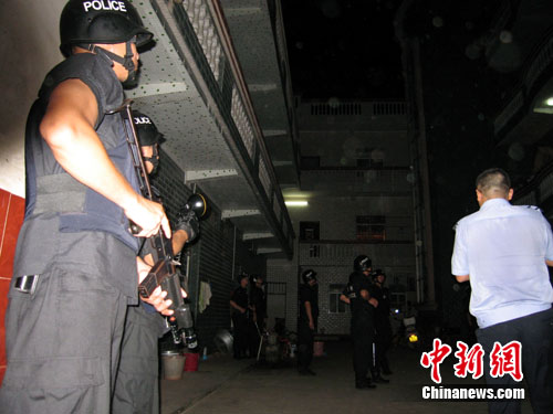 凌晨1時許,南寧市公安局局長廖洪濤與副局長吳宏飛率領數(shù)十輛滿載警察的車輛,飛速駛往橫縣。中新網記者跟隨這些全副武裝的特警和巡警等警種一同前往。