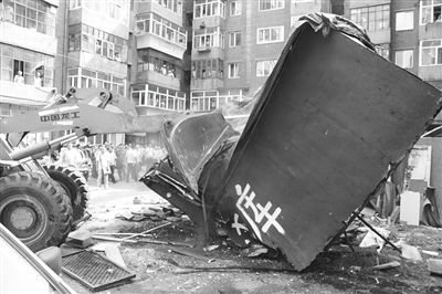 23日14時許,記者隨同80余名執(zhí)法人員來到現(xiàn)場,經(jīng)執(zhí)法人員連日調(diào)查發(fā)現(xiàn),遼陽街57號院內(nèi)共有私建車庫11處,房主不能提供任何審批手續(xù),并拒不自行拆除。當(dāng)執(zhí)法人員調(diào)動鏟車準(zhǔn)備進(jìn)行拆除時,一家車庫的房主將吉普車?吭谲噹烨,不讓鏟車靠近,并站在車庫門前對執(zhí)法人員進(jìn)行辱罵。其中一名男子更是拿出把30多厘米長的大長砍刀,揚言靠近傷到不負(fù)責(zé),并在執(zhí)法人員面前揮舞砍刀,一名執(zhí)法人員受傷。他一邊揮舞砍刀一邊對執(zhí)法人員進(jìn)行辱罵,站在旁邊的3名男女不時地推搡執(zhí)法人員,阻止拆除工作。面對恐嚇和威脅,執(zhí)法人員采取措施將私建房主隔離現(xiàn)場,并調(diào)來拖車將擋在車庫前的吉普車拖離現(xiàn)場后立即開展拆除。隨著鏟車的轟鳴聲,11處侵占居民生活空間的私建車庫被強拆。