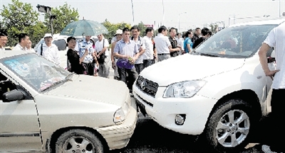“兩車(chē)相撞后,豐田車(chē)司機(jī)跳下來(lái),大聲對(duì)我說(shuō),他在洛陽(yáng)報(bào)警多次,說(shuō)他家里有毒品,可洛陽(yáng)警方一直不理他。他跑到鄭州,找公安廳找不到,就在這里撞車(chē)。”