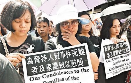 中新網(wǎng)8月30日電 據(jù)香港星島日報報道,香港特區(qū)立法會各政團發(fā)起“悼念菲律賓遇難港人”大游行的同時,多個菲律賓團體二十九日上午也舉行祈禱會表達哀傷,聚集近四百人,悼念馬尼拉挾持人質(zhì)事件的死難者。菲律賓傭工協(xié)會發(fā)言人表示,菲律賓人與港人一樣對事件感到哀傷和憤怒,要求當(dāng)局徹查事件。