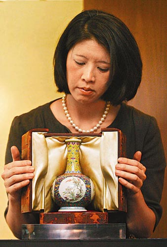 蘇富比中國及東南亞區(qū)副董事沈恩文表示,琺瑯彩搥瓶專為皇室而造,當(dāng)時產(chǎn)量僅有數(shù)百個,現(xiàn)時大部分收藏于北京故宮博物館及臺北故宮博物館,流傳于民間,由私人收藏是很罕見。他說,今次拍賣會有另一個清乾隆制琺瑯彩搥瓶,繪畫的四季花卉品類與焦點珍品相同,構(gòu)圖則有差異,但因為曾作修補,非完好無缺,故估價較低,約800萬至1000萬港元。