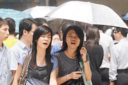 天文臺昨午錄得香港今年最高氣溫三十四點一度,上水及跑馬地氣溫更一度高達(dá)三十六點四度,打鼓嶺、沙田、石崗、深水埗、九龍城、黃大仙、觀塘、將軍澳及香港公園,最高氣溫也破三十五度?釤崽鞖饩嬗芍芤簧е两,已逾六十小時。
