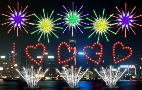 較有特色的包括第三幕的“環(huán)保香港”,為配合香港館于上海世博的主題,全幕煙花都采用綠色;而第七幕的“愛你一萬年”,高空會打出心形煙花的圖案,比喻愛情歷久常新,天長地久。