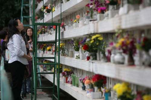中新網10月17日電 據香港大公報報道,秋高氣爽,香港大批孝子賢孫在重陽節(jié)前往拜祭先人。不僅將軍澳和鉆石山等墳場,連紅磡一帶的長生店,也有市民手持大包小包祭品,到先人骨灰龕位前拜祭,慎終追遠。有市民到和合石景仰園,向馬尼拉人質事件中罹難的其中四名港人致祭。