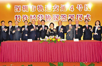 深圳市長許宗衡、深圳市常務副市長許勤、副市長張思平與香港運輸及房屋局局長鄭汝樺、香港鐵路公司主席錢果豐等出席了簽約儀式。許宗衡表示,引進港鐵興建深圳軌道4號線的建設并授權運營,具有歷史里程碑的意義。