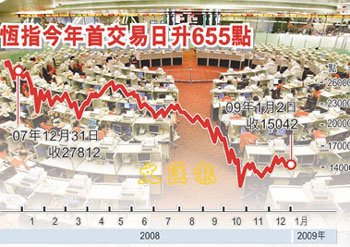 中新網(wǎng)1月5日電 據(jù)香港《文匯報(bào)》報(bào)道,溫家寶總理在元旦日跟大家打氣,中央再推“雙十規(guī)劃”促進(jìn)經(jīng)濟(jì),受惠股份如中資金融股、內(nèi)需股、汽車股及家電股均被市場(chǎng)看高一線,加上受3G發(fā)牌刺激的電訊股,及“松綁”的內(nèi)房股,預(yù)計(jì)5日復(fù)市的A股及港股將受惠利好消息而向好。