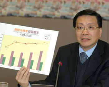 消委會(huì)去年接獲4.2萬(wàn)宗投訴,較前年增加3500宗,打破歷年紀(jì)錄。張炳良總結(jié)數(shù)字時(shí)表示,投訴個(gè)案創(chuàng)新高,主要是消費(fèi)者于去年面對(duì)金融危機(jī),令金融服務(wù)投訴大幅攀升,增幅超過10倍。若“扣除”9200多宗金融服務(wù)投訴個(gè)案,多項(xiàng)主要類別投訴均下降,包括電訊、商品和服務(wù),而涉及旅客投訴也減少。