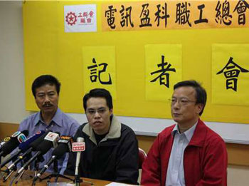 香港工聯(lián)會(huì)權(quán)益委員會(huì)及電盈工會(huì)19日召開緊急記者會(huì),工聯(lián)會(huì)權(quán)益委員會(huì)副主任崔世昌表示,19日收到35個(gè)電盈員工投訴,稱被公司解雇,其中包括16名長工和19名合約工,主要來自產(chǎn)品市場及推廣部及寬帶網(wǎng)絡(luò)設(shè)計(jì)部,年資最長30年。