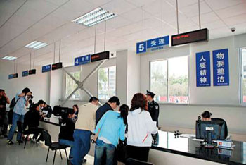 四月一日,深圳居民擴(kuò)大個人游香港試點啟動,同時該市公安局出入境辦證大廳啟用。 中國公安部決定,自2009年4月1日開始實施為深圳戶籍居民辦理一年多次往返香港個人旅游簽注,新政策將惠及除國家登機(jī)備案工作人員之外的二百二十多萬居民。 中新社發(fā) 陳文 攝