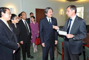 下午,代表團與莫斯科市政府第一副市長兼經(jīng)濟政策及發(fā)展主管Yuri Vitalyevich Roslyak會面。會上,曾俊華向副市長闡述香港抵御全球金融危機效應的措施,雙方又探討可供兩地合作的范疇。