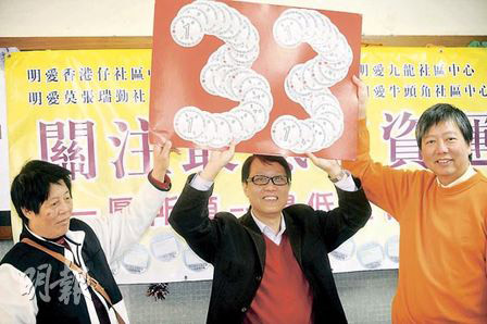 香港明愛青少年及小區(qū)服務(wù)于上月下旬進(jìn)行調(diào)查,收集了253名基層人士的意見,結(jié)果顯示,受訪者期望最低工資金額中位數(shù)為33元,最多人希望時(shí)薪訂于35元或以上,占47%,認(rèn)為應(yīng)少于30元?jiǎng)t約有一成人。