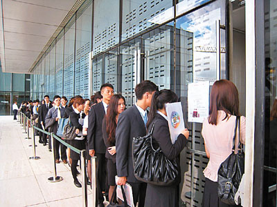 港龍舉辦的招聘會(huì)原定昨晨9時(shí)開(kāi)始,但因8時(shí)前已有逾千人排隊(duì)等候,排頭位的應(yīng)征者更于凌晨5時(shí)許抵達(dá),港龍決定提早于8時(shí)開(kāi)始派籌,1,200個(gè)面試籌于45分鐘內(nèi)派完,應(yīng)征者則分別獲安排昨日或今日面試及筆試。在8時(shí)45分抵達(dá)現(xiàn)場(chǎng)的陳小姐,到場(chǎng)后才知道面試名額已滿。她稱,未預(yù)料招聘反應(yīng)如此踴躍,加上母親特別陪同到場(chǎng)打氣,對(duì)未獲面試機(jī)會(huì)感到無(wú)奈,認(rèn)為港龍應(yīng)臨場(chǎng)應(yīng)變?cè)黾用嬖嚸~。