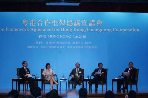 今年四月初,曾蔭權(quán)和黃華華等粵港政府高層,在習(xí)近平等中央領(lǐng)導(dǎo)人見(jiàn)證下,簽署《粵港合作框架協(xié)議》,揭開(kāi)粵港緊密合作新篇章。昨日兩地政府再度連手,共同主辦宣講會(huì),意在向社會(huì)各界講解《框架協(xié)議》對(duì)兩地合作提出的六個(gè)明確定位和分工,以及兩地如何通過(guò)功能互補(bǔ)、協(xié)調(diào)發(fā)展,共同提升整個(gè)區(qū)域的綜合競(jìng)爭(zhēng)力,以期讓各界更能掌握《框架協(xié)議》的機(jī)遇。