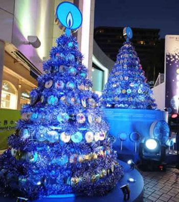 場(chǎng)內(nèi)設(shè)置的3棵環(huán)保圣誕樹,則由超過6000張廢舊光盤制成,利用光盤反射自然光線達(dá)到裝飾效果。香港地球之友將在展覽結(jié)束后回收這些光盤,循環(huán)再造成塑料制品。