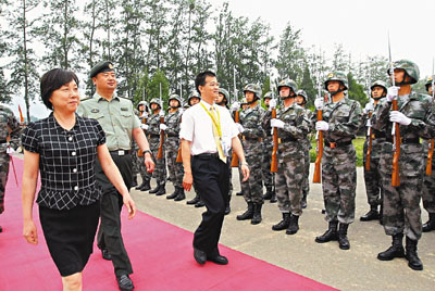 學(xué)員早上乘車到解放軍北京衛(wèi)戍區(qū)的軍營參觀,文匯報副社長兼未來之星同學(xué)會主席韓力在北京衛(wèi)戍區(qū)警衛(wèi)三師副師長朱繼明陪同下檢閱軍隊,之后兩人與北京衛(wèi)戍區(qū)警衛(wèi)三師副參謀長閆慶峰、北京衛(wèi)戍區(qū)警衛(wèi)三師十一團(tuán)團(tuán)長李永奎、北京衛(wèi)戍區(qū)外事處處長王普升等及一眾同學(xué)欣賞軍事表演。