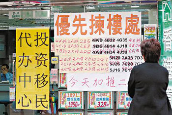 內(nèi)地4萬億救市方案,部分資金流入香港股樓市場,推動近月兩大市場的成交量,尤以物業(yè)市場的表現(xiàn)最為突出,除了投資收租,購入物業(yè)作投資移民的個案也大增,更漸漸發(fā)展成具規(guī)模的“購樓團”。