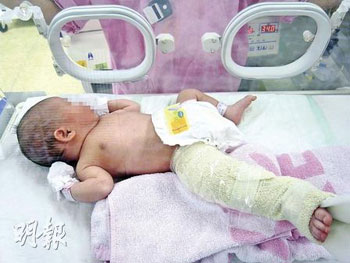 中新網(wǎng)9月23日電 據(jù)香港《明報(bào)》報(bào)道,一名來自佛山的婦人日前到香港浸會(huì)醫(yī)院剖腹生下女嬰,父母稱女嬰出生時(shí)正常且“撐手撐腳”,但3小時(shí)后醫(yī)生才告知女嬰右腿骨折,父母懷疑是醫(yī)護(hù)人員疏忽照顧所致,已報(bào)警求助。
