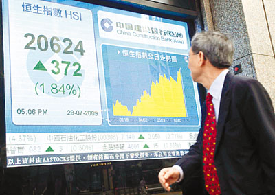 中新網(wǎng)7月29日電 據(jù)香港《文匯報(bào)》報(bào)道,港股連續(xù)第4天上升,恒指28日早段表現(xiàn)反復(fù),一度回吐142點(diǎn),午后在中移動(dòng)等續(xù)炒A股回歸概念股,以及地產(chǎn)股帶動(dòng)下,才展現(xiàn)升幅,恒指曾經(jīng)高見(jiàn)20664點(diǎn),升逾410點(diǎn)。最終全日?qǐng)?bào)20624.5點(diǎn),升372.9點(diǎn),升幅1.8%,再創(chuàng)“雷曼爆煲”后新高,成交額增至852.5億元。