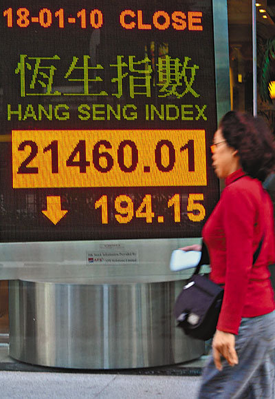 中新網(wǎng)1月19日電 據(jù)香港《文匯報(bào)》報(bào)道,承接美股弱勢(shì),港股18日低開227點(diǎn)后,最多跌過(guò)334點(diǎn),其后在中資金融股反彈下,下午跌幅進(jìn)一度收窄至不足10點(diǎn),但其后跌幅再擴(kuò)大,最終收?qǐng)?bào)21460點(diǎn),跌194點(diǎn),總成交695億元,是連續(xù)5天跌市,全日高低波幅325點(diǎn)。