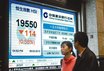 中新網(wǎng)2月9日電 據(jù)香港《文匯報(bào)》報(bào)道,農(nóng)歷新年前,投資者入市意欲低迷,最重要是內(nèi)地將周四公布CPI和PPI等數(shù)據(jù),市場(chǎng)擔(dān)心會(huì)提早加息,恒指8日最多曾跌242點(diǎn)至19423.1點(diǎn),為近7個(gè)月低位,最后全日收?qǐng)?bào)19550.89點(diǎn),跌114.19點(diǎn),為5個(gè)月以來(lái)低位,主板成交大縮至600億元。
