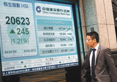 中新網(wǎng)2月24日電 據(jù)香港《文匯報(bào)》報(bào)道,財(cái)政預(yù)算公布前,港股反復(fù)造好,23日早段雖跟隨外圍低開,最多跌260點(diǎn),但賣地成績理想繼續(xù)刺激香港地產(chǎn)股上升,帶動港股由跌轉(zhuǎn)升,加上傳聞迪拜世界再獲注資,消息利好匯控,恒指最多曾倒升330多點(diǎn),收市報(bào)20623點(diǎn),升245.7點(diǎn),升幅1.2%,是2月3日以來近三周的最高收巿。