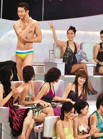 各位泳裝港男上到評判席拉票,其中以4號最主動(dòng)跪在地上獻(xiàn)吻,至于今年性感的女評判們,可能獲無線高層叮囑過不能與港男有身體接觸,個(gè)個(gè)表現(xiàn)得好斯文,沒有去年伍詠薇吸氧氣的奇景。最后兩輪比賽,結(jié)果由1號陳偉洪以915票大比數(shù)拋離對手,7號許家杰以443票僅次其后。