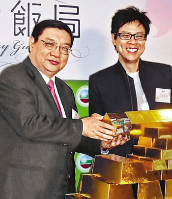 中新網(wǎng)8月14日電 據(jù)香港《文匯報(bào)》報(bào)道,香港無線總經(jīng)理陳志云13日邀請財(cái)經(jīng)界名人曹仁超接受《志云飯局》訪問,更送上多條大金磚給曹仁超。陳志云大爆曹仁超愛收藏金磚,最高峰時(shí)期家中有三個(gè)保險(xiǎn)箱擺放金磚,收藏黃金1000兩,即相等于眼前的金磚約40條。