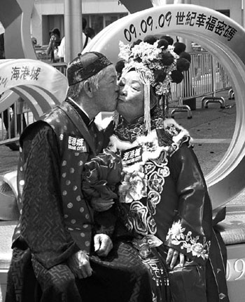 中新網(wǎng)9月9日電 據(jù)香港《文匯報》報道,今天是2009年9月9日,世紀一遇的“長長久久”日子,已“執(zhí)子之手,與子皆老”的香港人鐘氏夫婦,希望可以繼續(xù)愛到白頭。