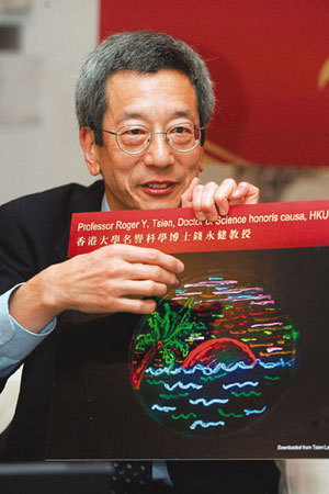 繼香港大學(xué)8日向錢永健頒授榮譽(yù)博士榮銜外,香港中文大學(xué)10日也會(huì)向他頒發(fā)榮譽(yù)理學(xué)博士,并由特首曾蔭權(quán)親自頒授。錢永健在香港的行程緊湊。他9日首先出席公開(kāi)講座,以“點(diǎn)綠成金”為題,在香港大學(xué)發(fā)表演說(shuō),當(dāng)中展示了他的實(shí)驗(yàn)室的最新研究進(jìn)展。